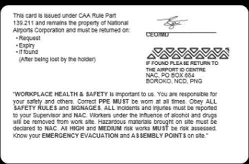 In addition to the general condition of use, National Aviation Security ID Centre shall issue a PNG Red ASIC to the following conditions as to its issue: